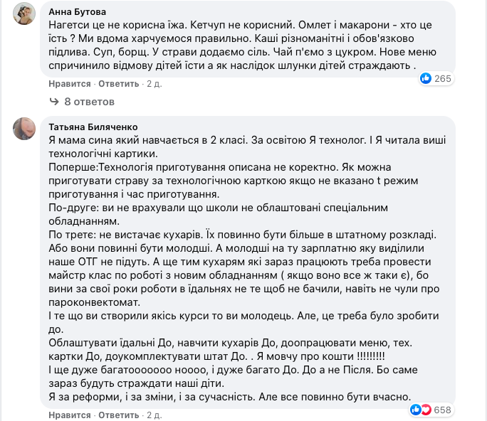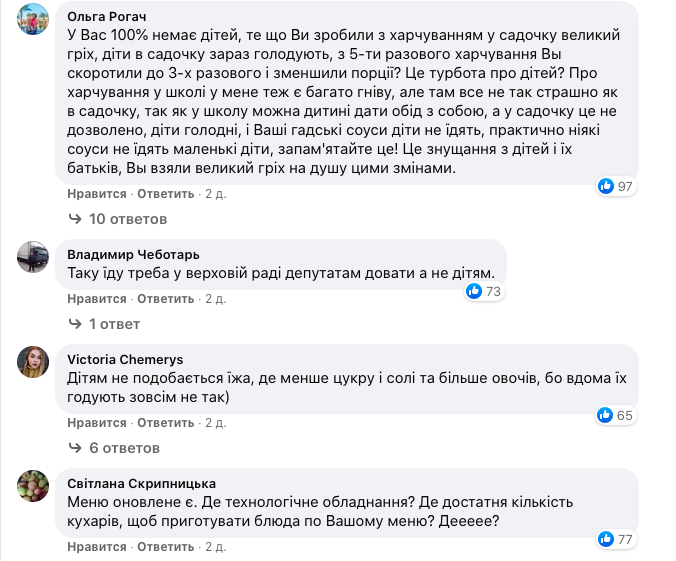 Многие родители в комментариях советуют Клопотенко самому есть свои блюда и “перестать издеваться над детьми”. Или же начинать такую реформу не с садиков и школ, а с Верховной Рады.