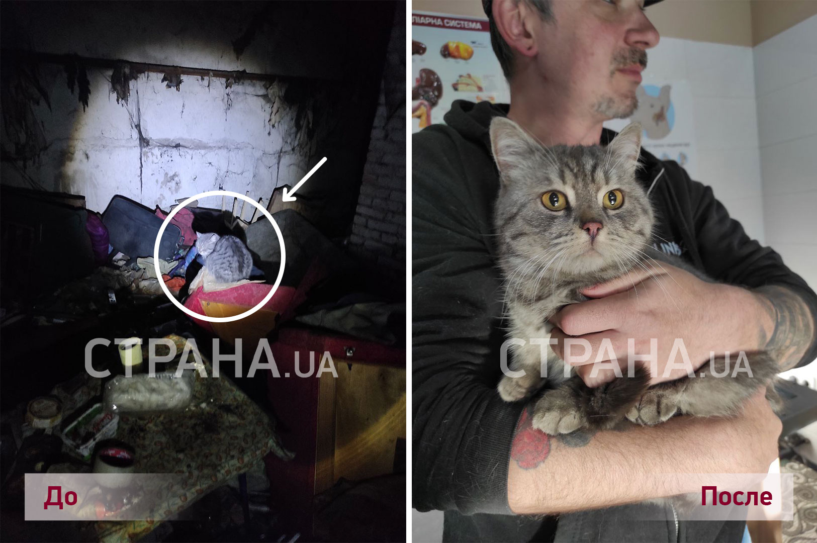Помимо кота Пиклса в этом самом разрушенном доме в Горенке удалось спасти кошку, которая все время пыталась проникнуть в свою квартиру.