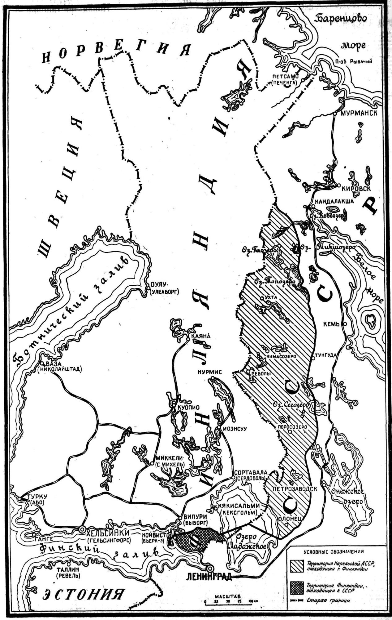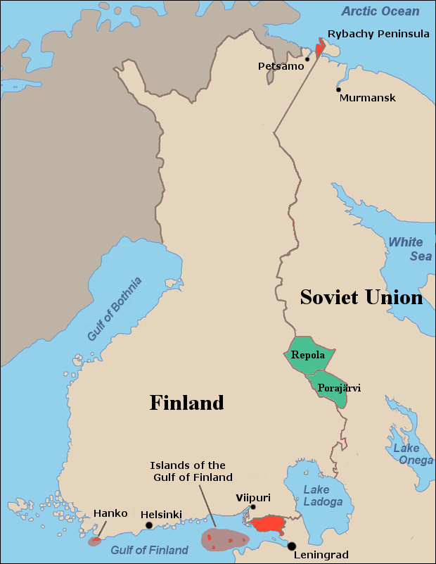 - Передача Советскому Союзу западной части полуострова Рыбачий в районе Петсамо (Печенга) на северо-востоке Финляндии.