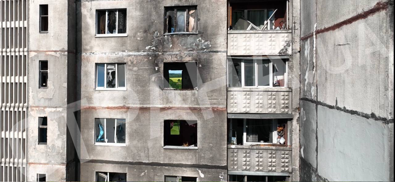 После того как ВСУ удалось оттеснить противника, некоторые жители начали возвращаться, чтобы забрать уцелевшие вещи. От ударной волны вся мебель и вещи в квартире Сергея разбросаны. Из стен торчат вырванные дверные рамы, пол укрыт мелким разбитым стеклом и покорёженными кусками метала. В прихожей воняет штукатуркой. На деревянной подставке стоят чудом уцелевшие комнатные растения с крупными зелёными листьями в желтых пятнах.