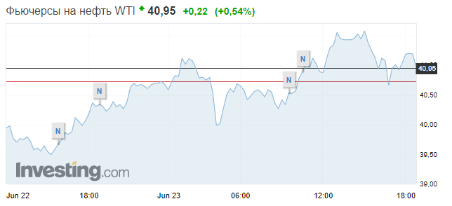 В свою очередь августовские фьючерсы WTI на торгах Нью-йоркской товарной биржи (NYMEX) поднялись в цене на $0,22 (0,54%) - до $40,95 за баррель.