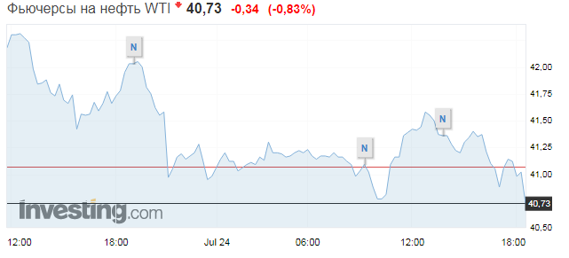 В свою очередь фьючерсы на нефть WTI на сентябрь на электронных торгах Нью-йоркской товарной биржи (NYMEX) к этому подешевели на $0,34 (0,83%) - до $40,73 за баррель.
