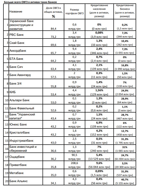 А вообще на 1 апреля разбивка ОВГЗ по банкам такая: