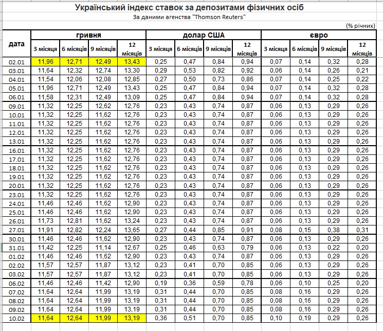- по вкладам до 6 месяцев — с 12,71% до 12,64% годовых;
