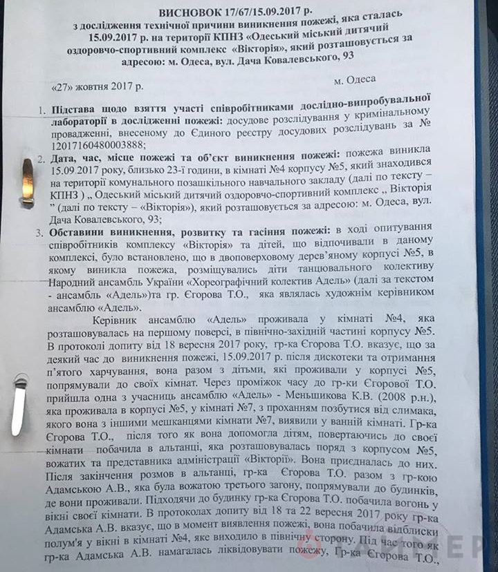 Соответствующий вывод указан в исследовании технической причины возникновения пожара, который обнародовало одесское издание "Таймер".