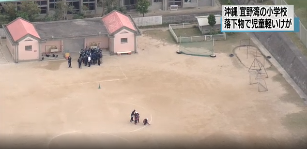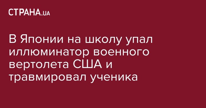 В японском городе Гинован на спортплощадку школы упал фрагмент американского военного вертолета разработки лаборатории Сикорского CH-53. В результате один ученик получил легкую травму руки.
