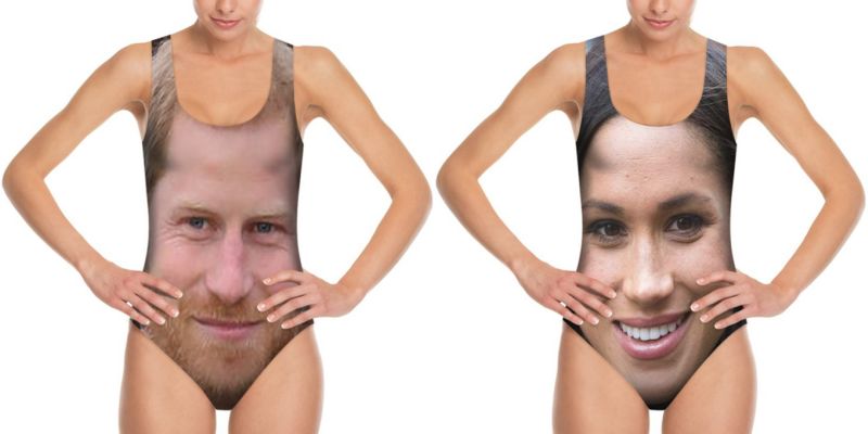 Еще одна фирма предлагает на своем сайте купальники с портретами Гарри и Меган. Предполагается, что клиент может выбрать рисунок самостоятельно. На сайте магазина представлено несколько вариантов. Стоит такой купальник от $38.