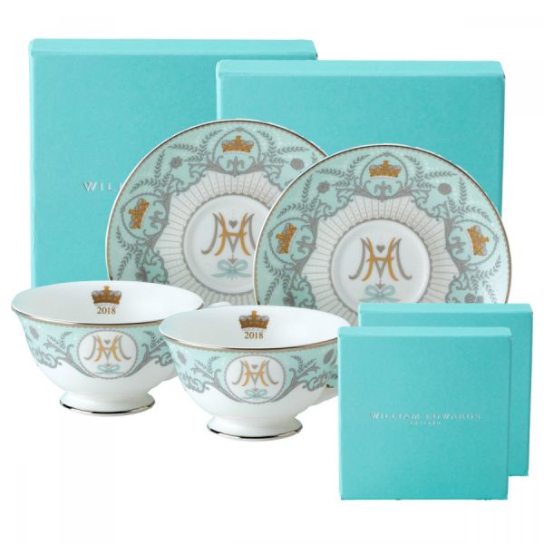 Среди сувениров – коллекция фарфора, покрытая 22-кратным золотом и платиной, на которой изображены инициалы Гарри и Меган, орнамент из золотых корон и национальных символов Соединенного Королевства – английской розы, шотландского чертополоха, ирландского трилистника и валлийского нарцисса.