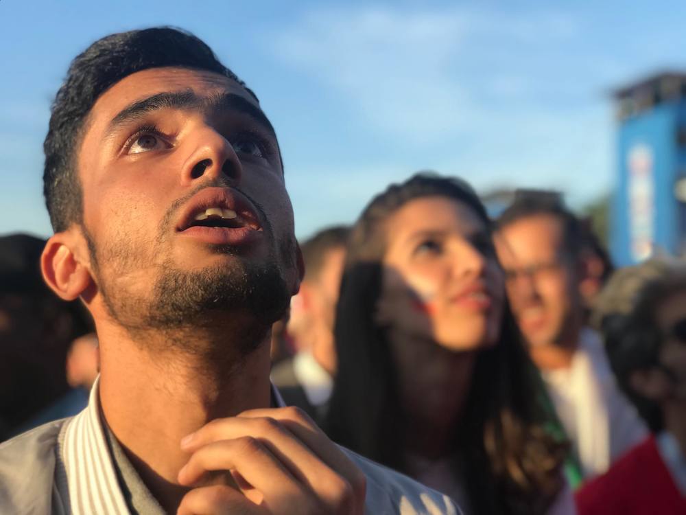 20.16 Немного ликования болельщиков сборной Ирана от специального корреспондента "Страны". Обращает на себя внимание, что женщины болеют наравне с мужчинами, а ведущий в международной фан-зоне говорит исключительно по-русски. Фантастическая атмосфера!