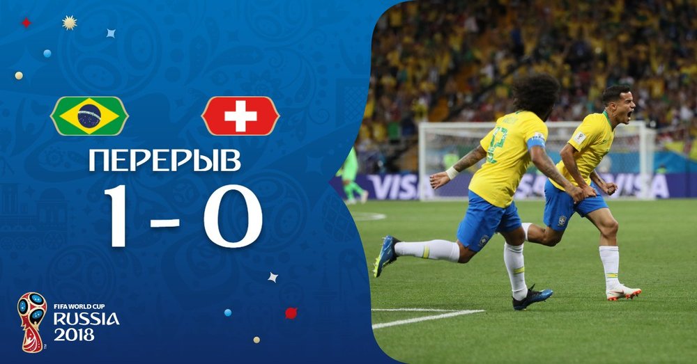 21.45 Перерыв. Бразилия - Швейцария - 1:0. В счете ведут пятикратные чемпионы мира, но как-то без особого отрыва - всего в один мяч.