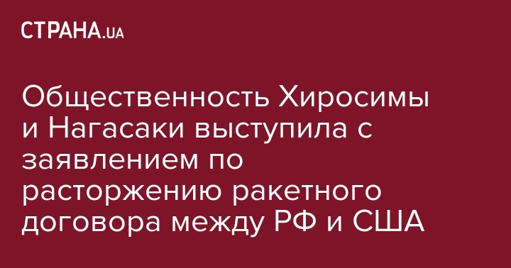 Общественность Хиросимы и Нагасаки выступила с заявлением по расторжению ракетного договора между РФ и США