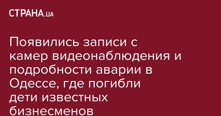 Появились записи с камер видеонаблюдения и подробности аварии в Одессе, где погибли дети известных бизнесменов