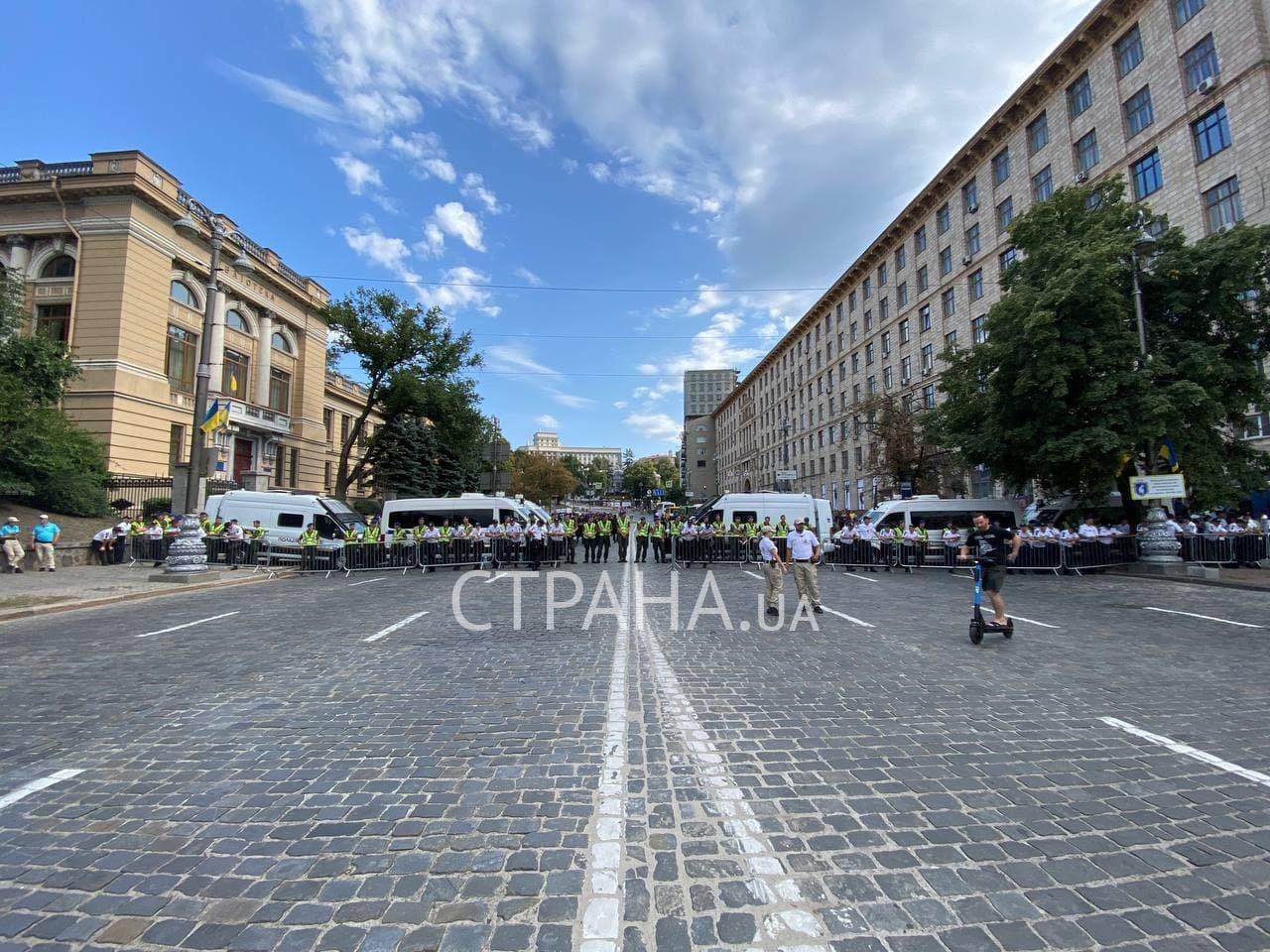 15:47 Со стороны стадиона Лобановского в направлении Кабмина установили коридор правоохранителей.