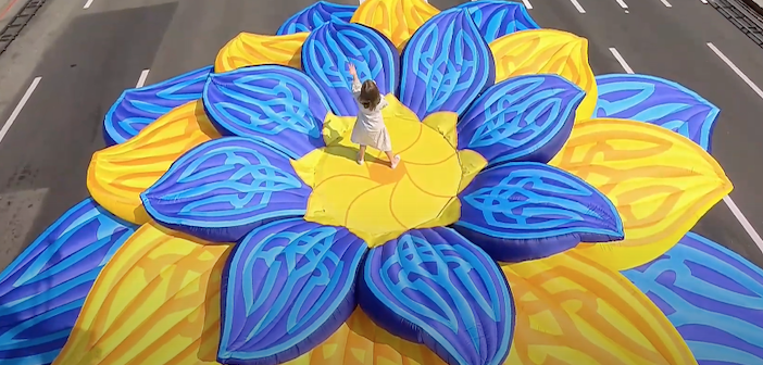 12:16 Заканчивается торжество на Майдане песней "Украина", которую исполняет девочка, едущая на желто-голубом цветке.