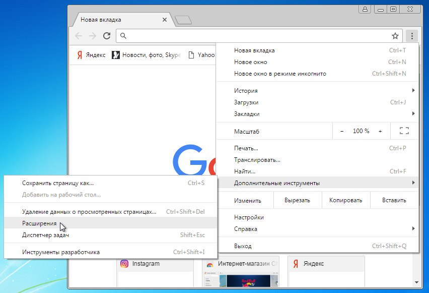 Расширения легко можно найти в настройках обоих браузеров. Поясним на примере "Хрома".