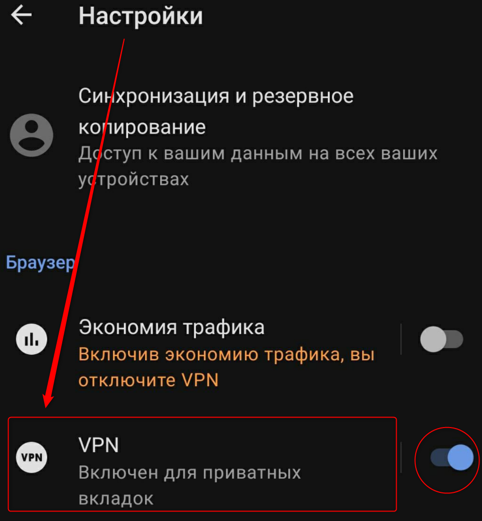 Кроме того, VPN там нужно самостоятельно включить в настройках.