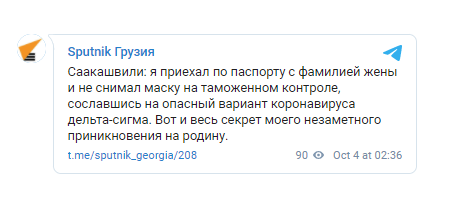 "Я приехал по паспорту с фамилией жены и не снимал маску на таможенном контроле, сославшись на опасный вариант коронавируса дельта-сигма. Вот и весь секрет моего незаметного проникновения на Родину", - сообщил политик.