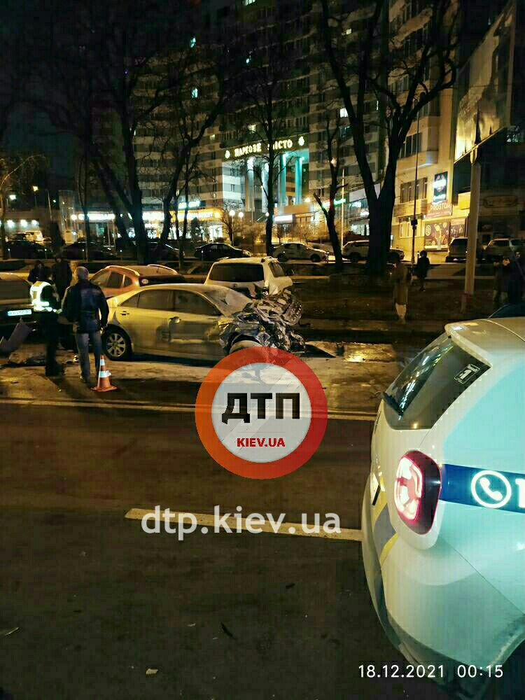 В столице легковое авто столкнулось с 15 припаркованными у дороги автомобилями. Фото: dtp.kiev.ua
