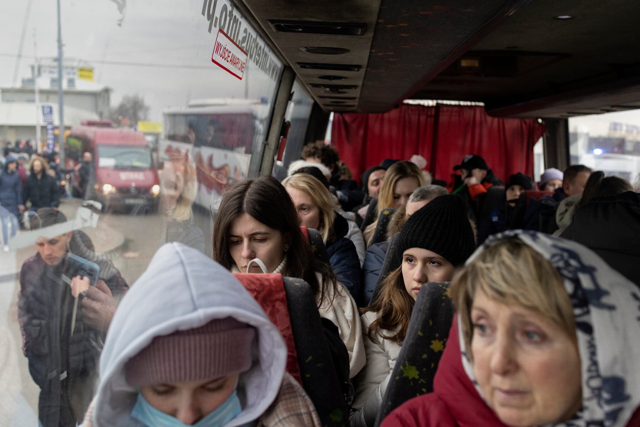 Украинцев везут от украинско-польской границы в Перемышль. Фото: Мачек Набрдалик/New York Times