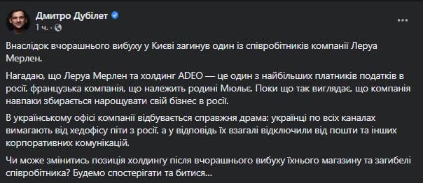 08.30 Нардеп Алексей Гончаренко опубликовал фото из торгового центра в Киеве, который вчера попал под российский обстрел.