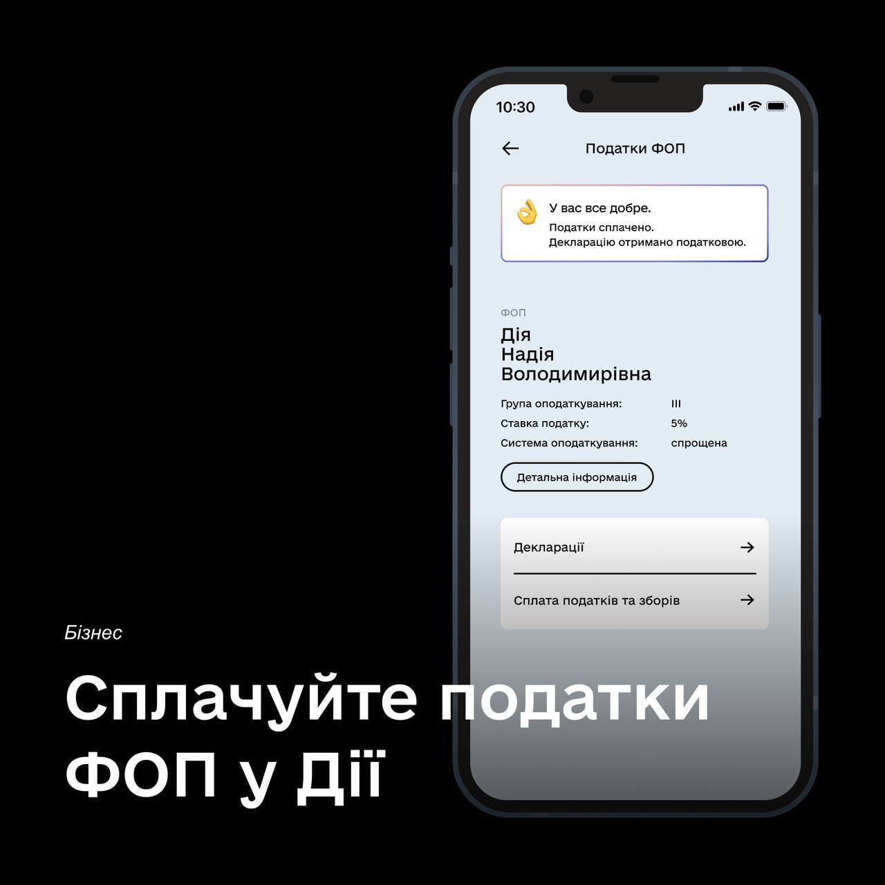 18.23 ФОПы 1-3 групп могут заплатить налоги в приложении "Дия". Услуга вновь стала доступна.