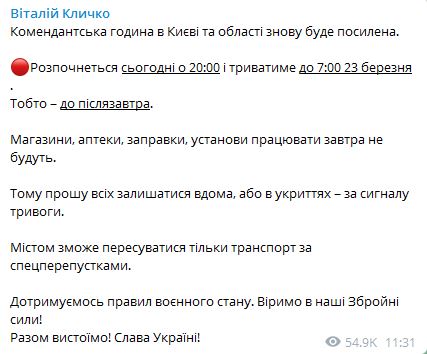 Магазины, транспорт, аптеки работать не будут. Киевлян просят оставаться дома или в укрытиях.