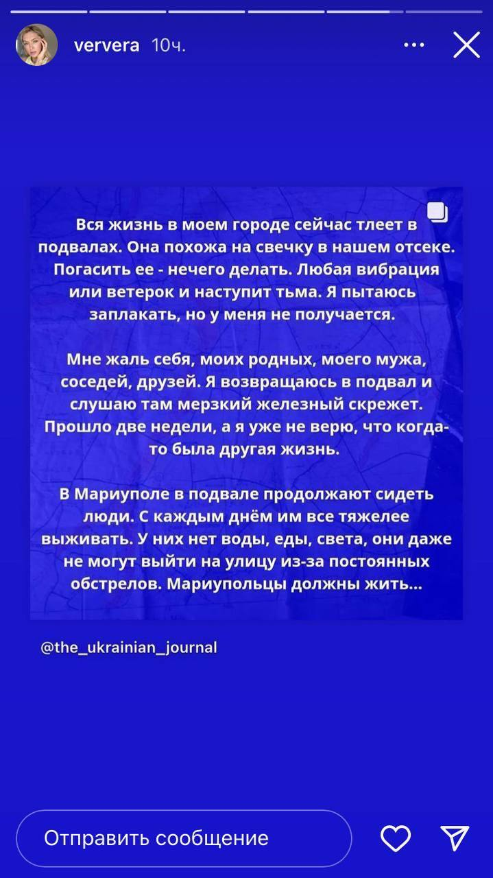 Певица Вера Брежнева заявила, что уехала из России в Польшу, где сейчас занимается волонтерской деятельностью.