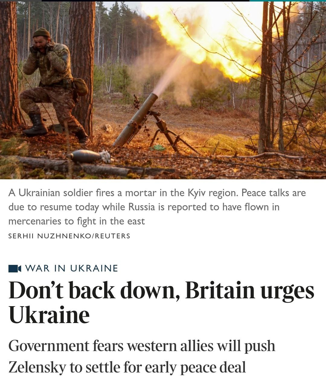 06.35 Издание The Times об Украине со ссылкой на источники в правительстве пишет, что Лондон советует Киеву не заключать "слишком быстрый" мир с Москвой.