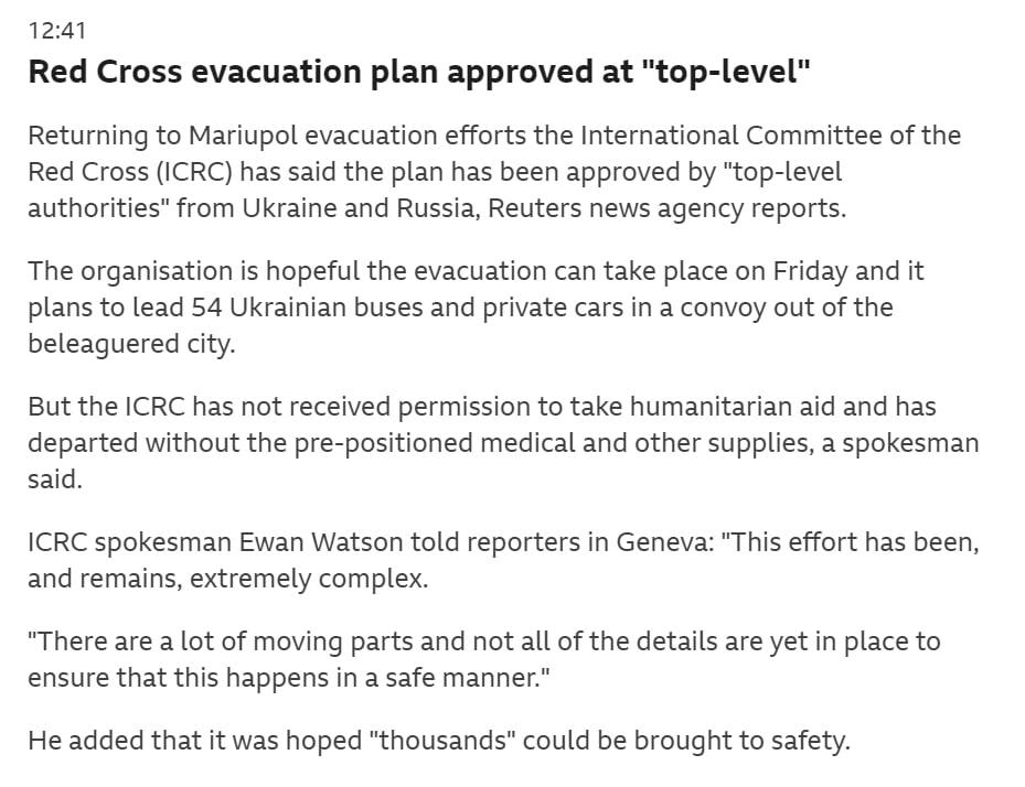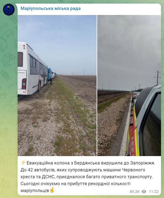 5. Также сегодня из Запорожья в Бердянск доехали еще 17 автобусов, которые завтра утром продолжат эвакуацию мариупольцев из Бердянска. Часть из них будет пытаться доехать ближе к Мариуполю.