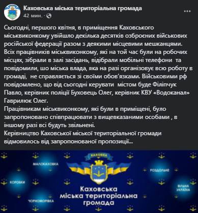 11.33 Мэр Мелитополя Фёдоров заявил, что из Крыма россияне протягивают свою линию интернета и блокируют украинскую мобильную связь.
