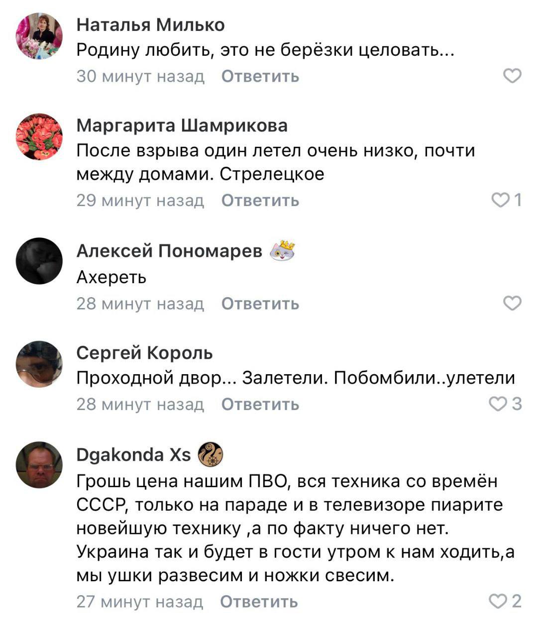 "Грош цена нашим ПВО. Вся техника со времен СССР, только в телевизоре и на параде пиарите новейшую технику, а по факту ничего нет", - возмущается другой пользователь.