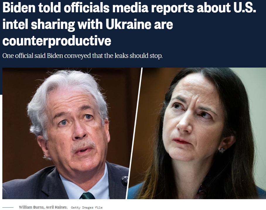 Президент США Джо Байден лично обзвонил представителей разведки с просьбой не сливать журналистам данные о помощи Украине. Это произошло после того, как всплыли детали о потоплении крейсера "Москва".