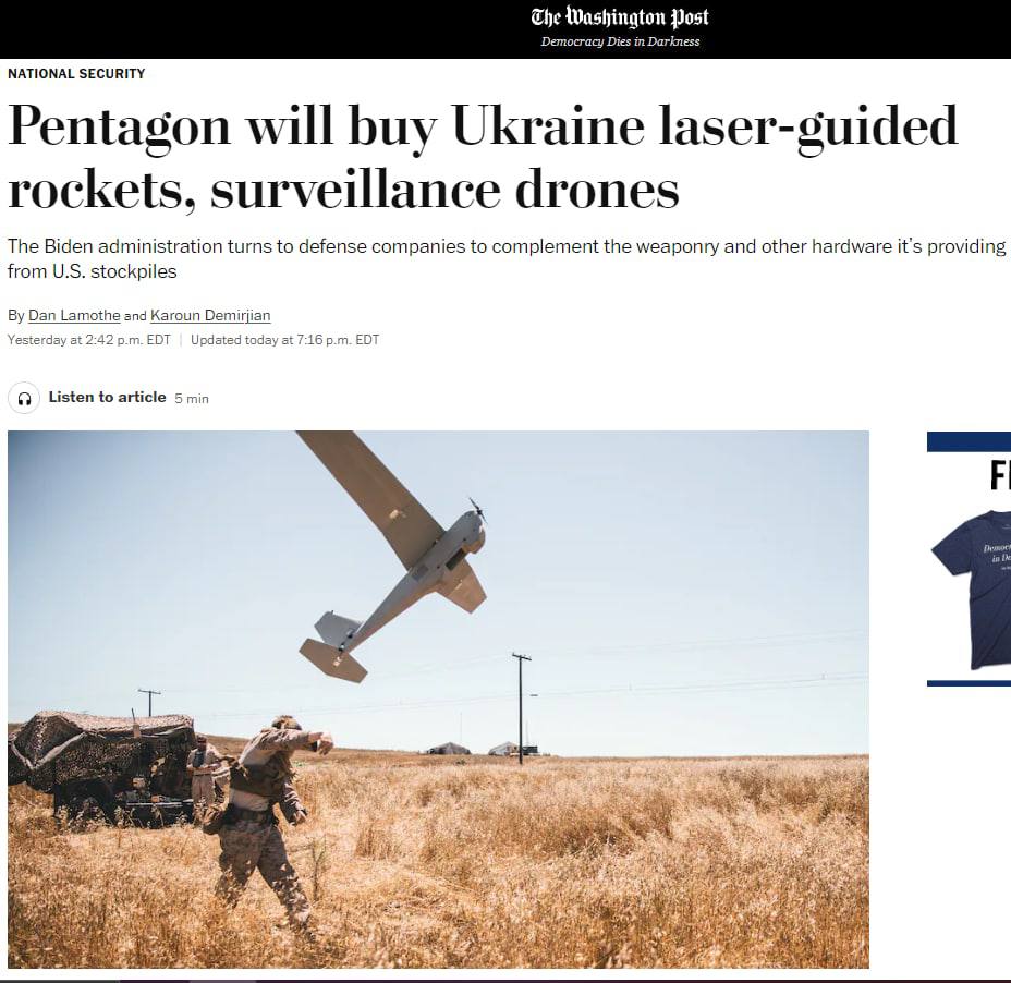 Заместитель главы Пентагона по закупкам и материально-техническому обеспечению Билл ЛаПланте заявил, что министерство обороны имеет одобренное Конгрессом финансирование в размере 300 миллионов долларов, которое можно потратить на имеющуюся в продаже военную технику.