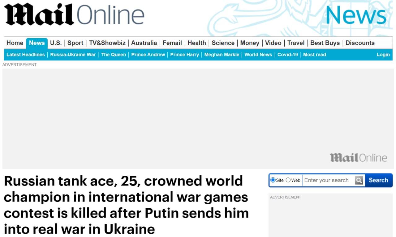 Об этом пишет Daily Mail, информация о гибели танкиста появилась и на местных сайтах Бурятии.
