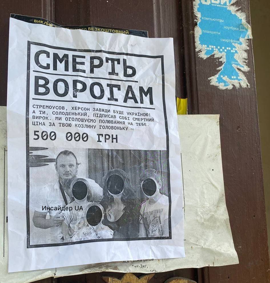В Херсоне вывесили объявление с обещанием полумиллиона за голову коллаборанта Стремоусова