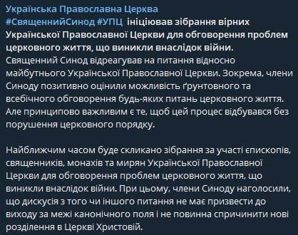 Священный Синод УПЦ инициировал собрание верующих Украинской Православной Церкви, на котором обсудят проблемы церковной жизни, возникшие в результате войны.