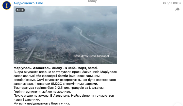 В мэрии Мариуполя заявили о применении фосфорных бомб против военных на "Азовстали". Видео обстрела
