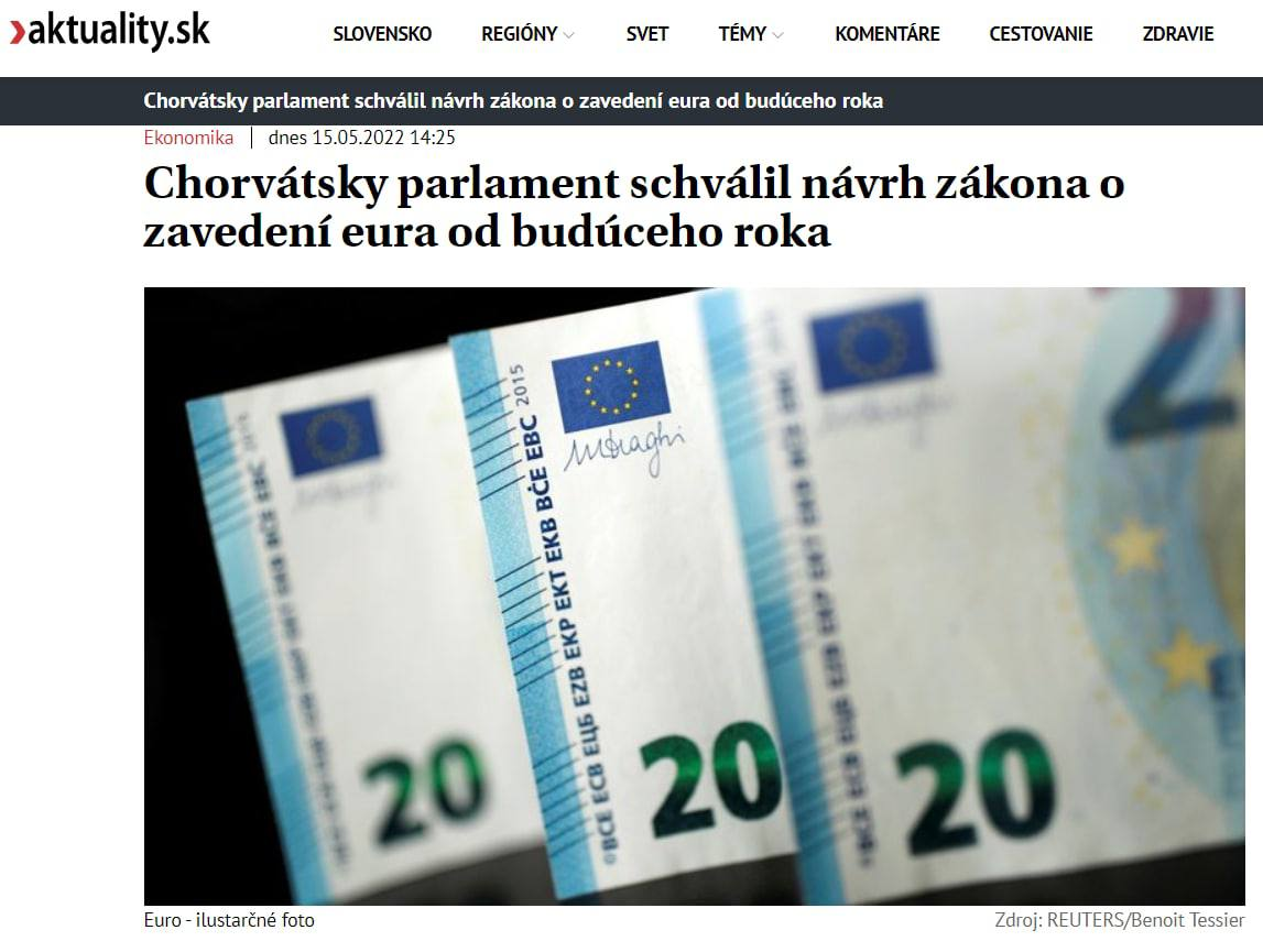 Хорватия переходит на евро вместо куны. За это проголосовало 117 депутатов при 13 голосах против.