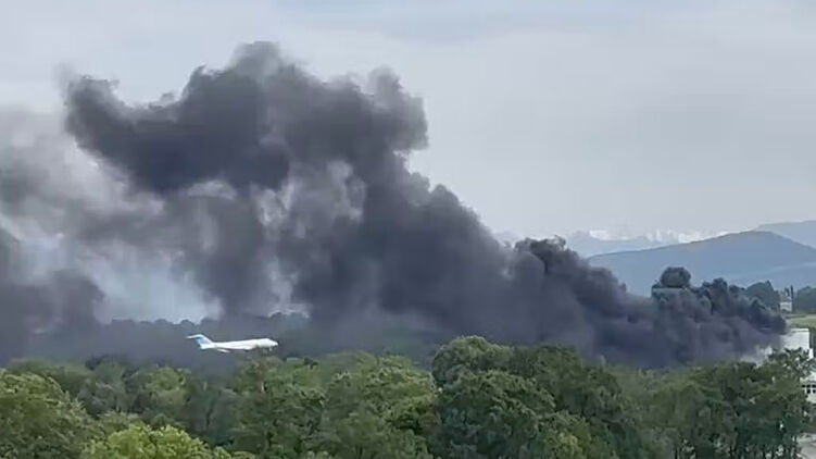 В соцсетях появились кадры густого черного дыма, покрывающего небо.