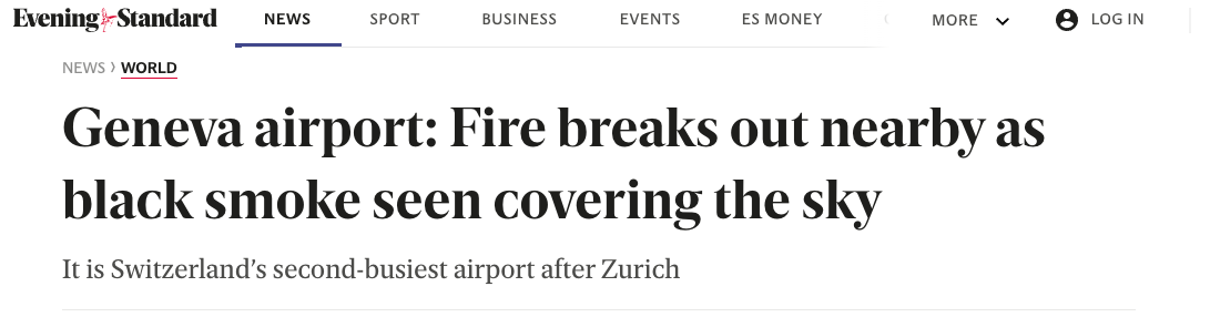 Из-за пожара все рейсы в аэропорту Женевы были приостановлены. Некоторые рейсы были перенаправлены в Лион и Базель.
