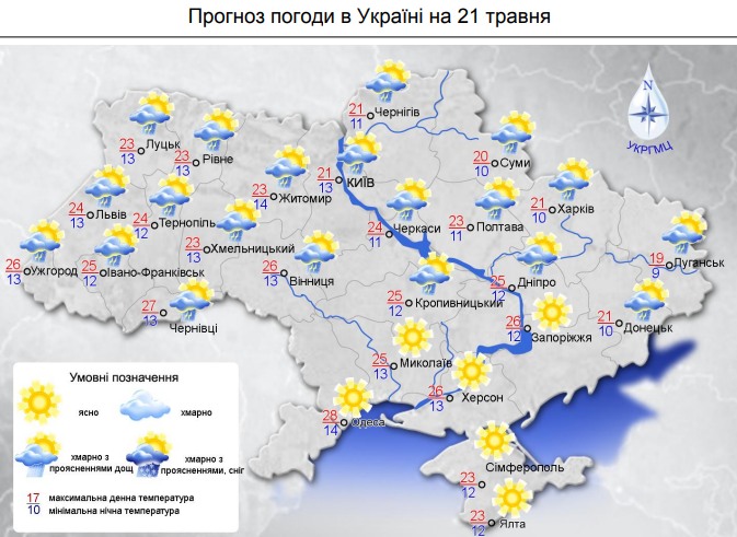 Температура днем +18-23, в южных и центральных областях +22-27, в Одесской области до +30.