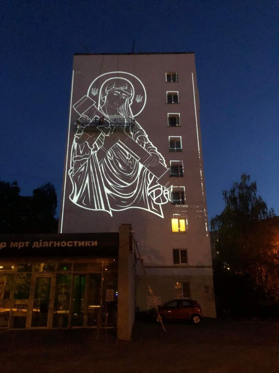 В Киеве рисуют мурал с изображением "святой Джавелины".