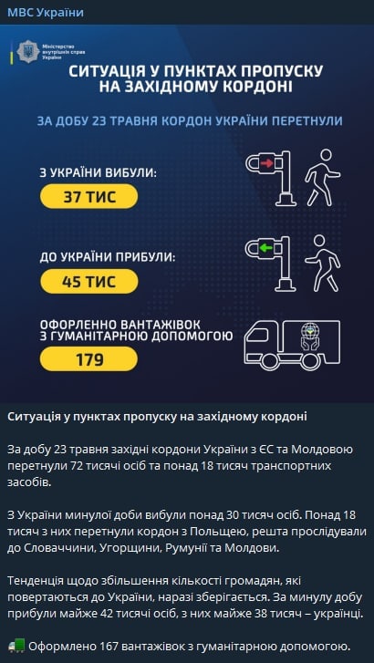 Тенденция по преобладанию возвращающихся над уезжающими из Украины сохраняется. Об этом сообщает пресс-служба МВД Украины.