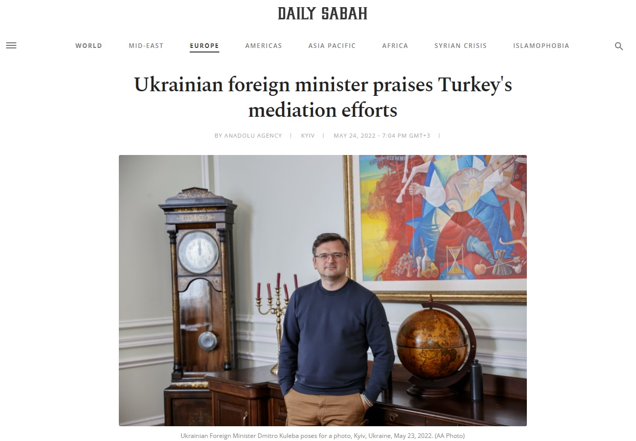 Об этом заявил глава МИД Украины Дмитрий Кулеба в интервью Daily Sabah.