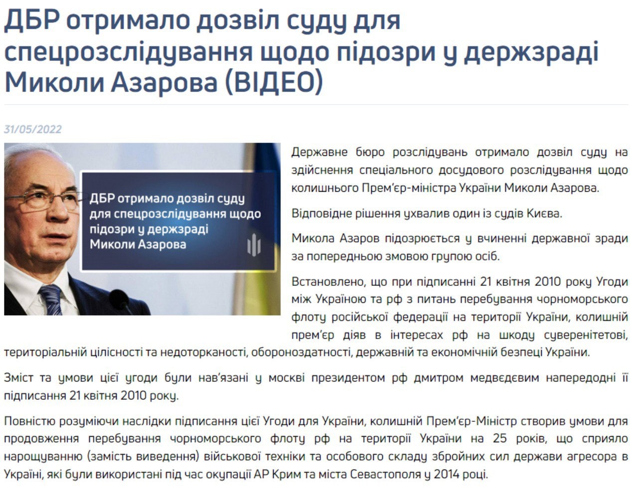 В ДБР говорят, что прокуратура установила, что Азаров действовал в интересах России, когда подписывал это соглашение.