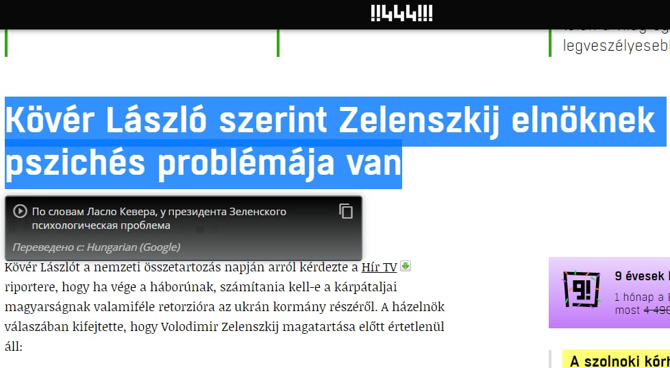 07:30 Спикер парламента Венгрии Ласло Кевер раскритиковал Владимира Зеленского и заявил, что у него есть "психическая проблема".
