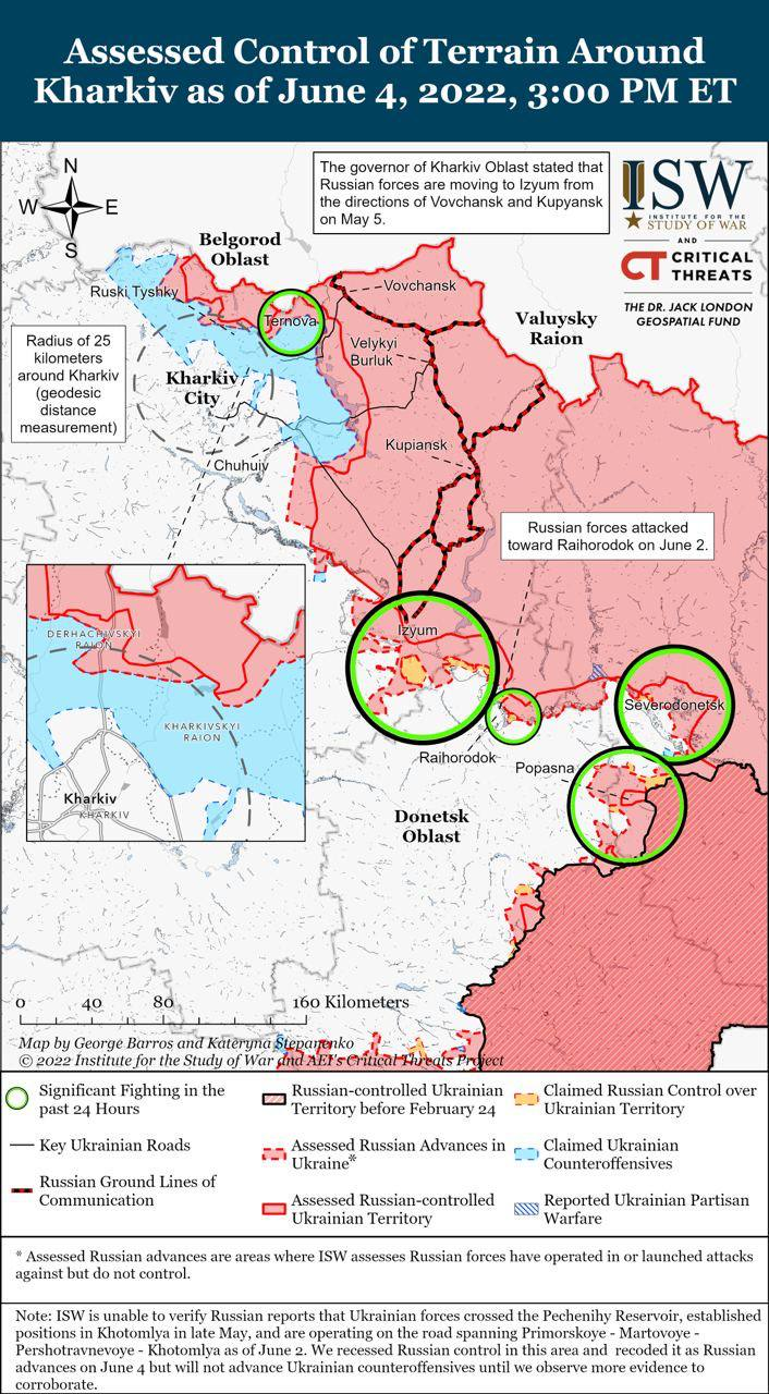 Украинские силы провели успешные локальные контратаки в Северодонецке, а прогресс российских войск в прямых штурмах города и более широких операциях по его окружению остается медленным.