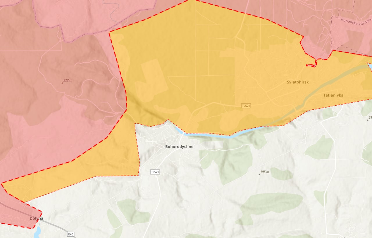 Противник, как пишет Генштаб, продолжается закрепляться в Святогорске и готовить наступление на Славянск. Судя по карте "Института изучения войны", россияне ведут операции уже на правом берегу Донца в районе Святогорска. Объективными данными это не подтверждено. Также как и взятие села Татьяновка на вершине меловой горы на правом берегу Донца около Лавры (об этом пишут российские телеграмм-каналы).