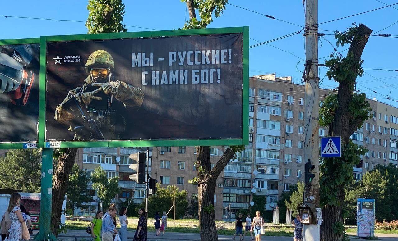 В Луганске развесили плакаты с российскими военными, в Мелитополе раздают паспорта РФ.