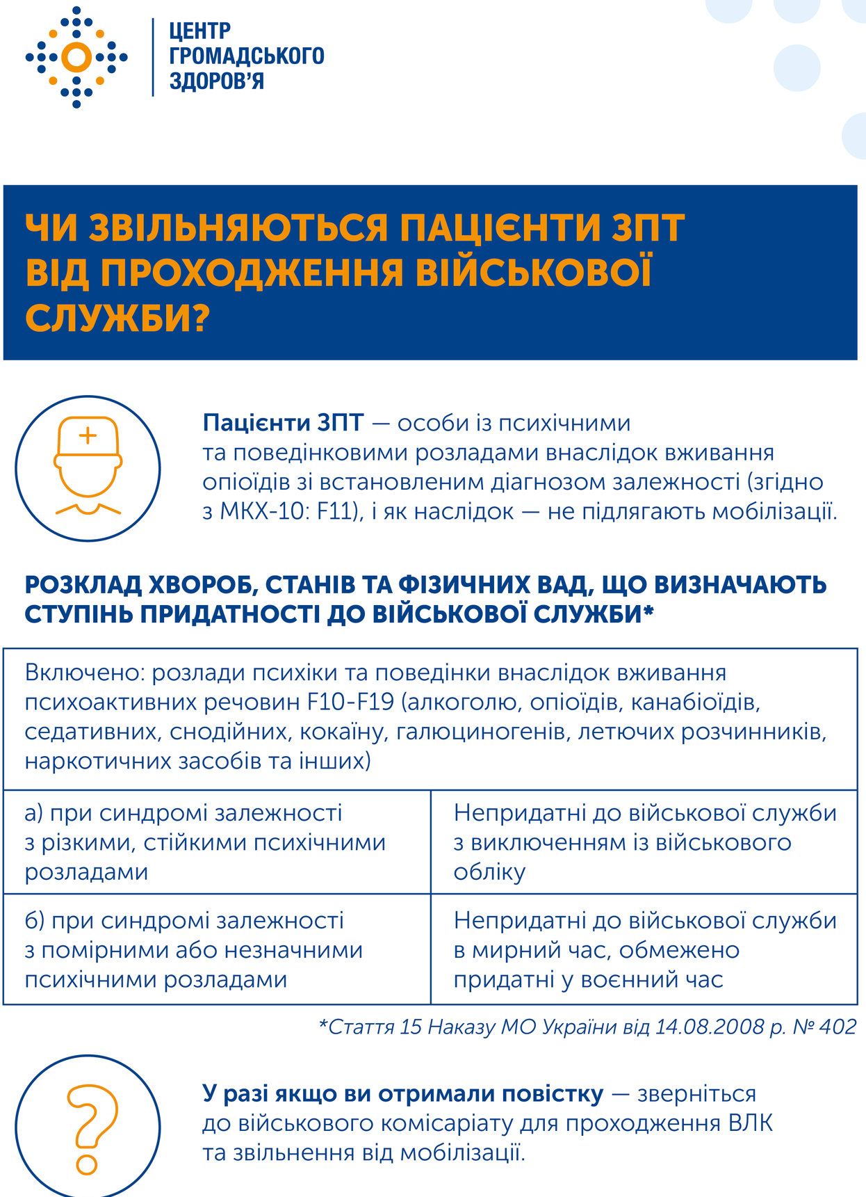 В Украине люди, получающие лечение с использованием препаратов заместительной поддерживающей терапии (ЗПТ), не подлежат мобилизации.